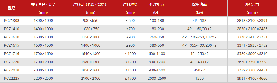 PCZ新型重錘式破碎機技術(shù)參數(shù)