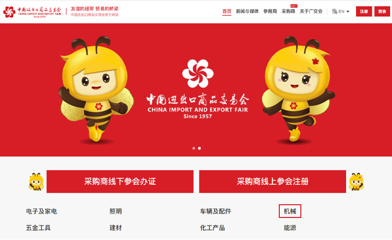 首先,登錄廣交會官網(wǎng)(https://www.cantonfair.org.cn/),點擊機械選項。