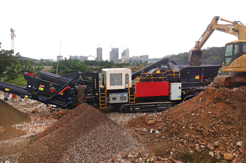 那么如何生產(chǎn),選用什么設(shè)備好呢?建筑垃圾集中在城市周邊,如果建設(shè)固定式生產(chǎn)線,就屬于工廠,需要經(jīng)過環(huán)保等部門的審批,往往周期長、建設(shè)難度大、成本高,物料轉(zhuǎn)場的運(yùn)輸成本高。再者,很多時(shí)候拆遷產(chǎn)生的建筑垃圾分布不集中,作業(yè)環(huán)境復(fù)雜,綜合考慮,采用移動式破碎篩分站是最佳的選擇。