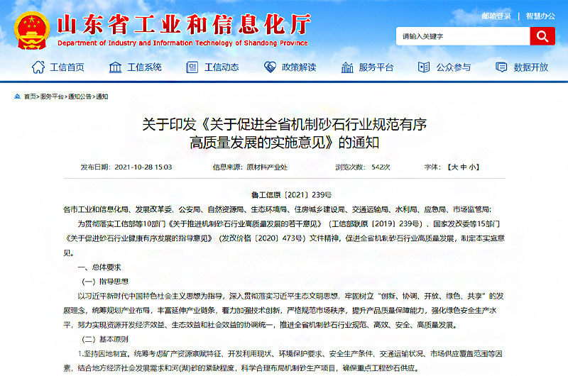 正所謂,兵馬未動(dòng)糧草先行,在基礎(chǔ)建設(shè)領(lǐng)域,司空見慣的砂石就是先行的“糧草”。對(duì)此,山東省及早謀劃先行一步。山東是建材生產(chǎn)和消費(fèi)的大省,建材工業(yè)體系門類眾多、配套完備。近日,山東省工信廳接連印發(fā)《山東省建材工業(yè)“十四五”發(fā)展規(guī)劃》、《關(guān)于促進(jìn)全省機(jī)制砂石行業(yè)規(guī)范有序高質(zhì)量發(fā)展的實(shí)施意見》,明確了砂石骨料、石材、石膏及石膏制品、耐火材料、墻體材料、水泥、平板玻璃、建筑衛(wèi)生陶瓷、玻璃纖維及復(fù)合材料、防水材料等十個(gè)細(xì)分建材行業(yè)為“十四五”時(shí)期的發(fā)展重點(diǎn)。
