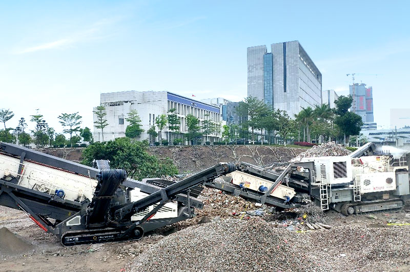 移動(dòng)式履帶站建筑垃圾處理現(xiàn)場(chǎng)