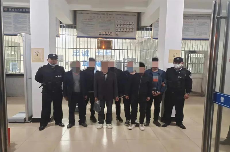 民警得知這一情況后,迅速成立專項調(diào)查組展開行動。通過調(diào)查取證,民警掌握了該采砂團(tuán)伙的大量證據(jù)。2021年10月30日,麻城警方雷霆出擊,成功抓獲了以肖某為首的團(tuán)伙成員共9人,現(xiàn)場扣押鏟車兩臺,對講機四部,一舉將這個長期盤踞在新洲、鐵門、歧亭、宋埠、中館驛一帶的盜砂犯罪團(tuán)伙抓獲。