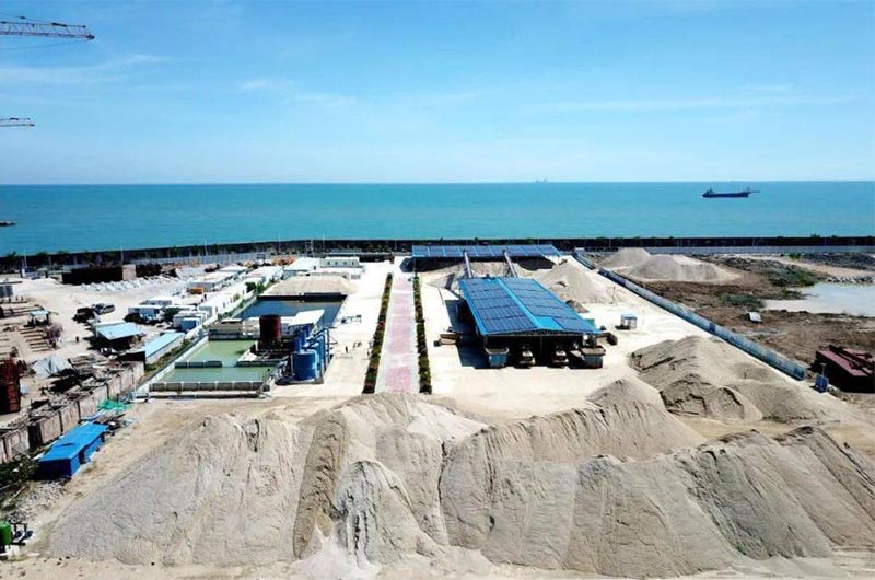 海南四周環(huán)海,海砂利用十分有利。海沙中富含負價氯離子,具有較強的侵蝕性,其生成的氯化鹽會降低結(jié)構(gòu)物的強度、剛度和穩(wěn)定性。因此在用海沙之前,首先需要對海沙中的鹽分、雜質(zhì)等用洗沙機反復的沖洗,直至可以達到符合建筑用砂的標準,這就是海砂淡化技術(shù)。