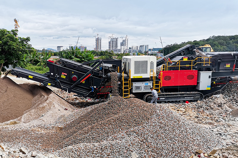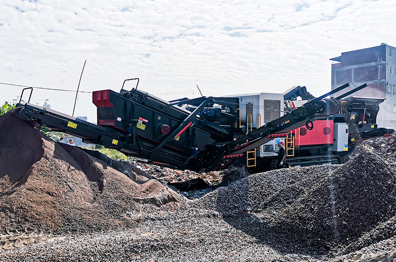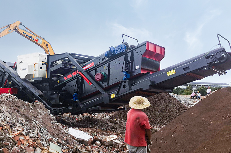 (紅星履帶式移動破碎篩分站處理建筑垃圾現(xiàn)場)