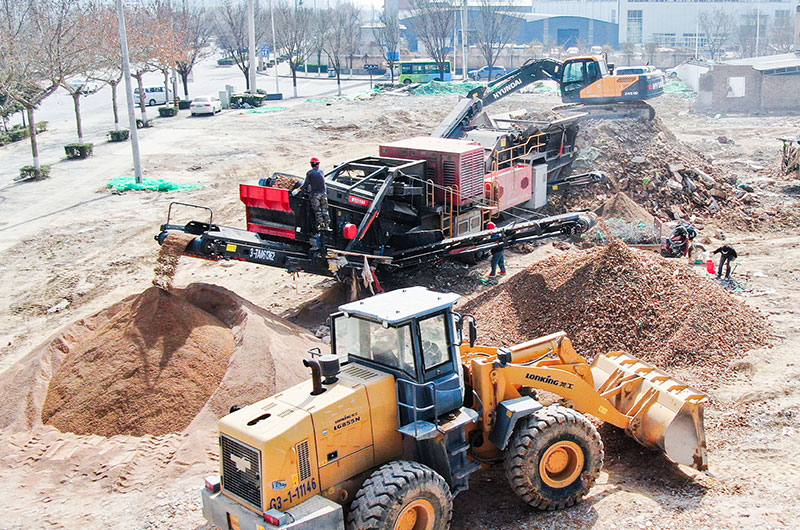 (紅星履帶式移動破碎篩分站作業(yè)現(xiàn)場)
