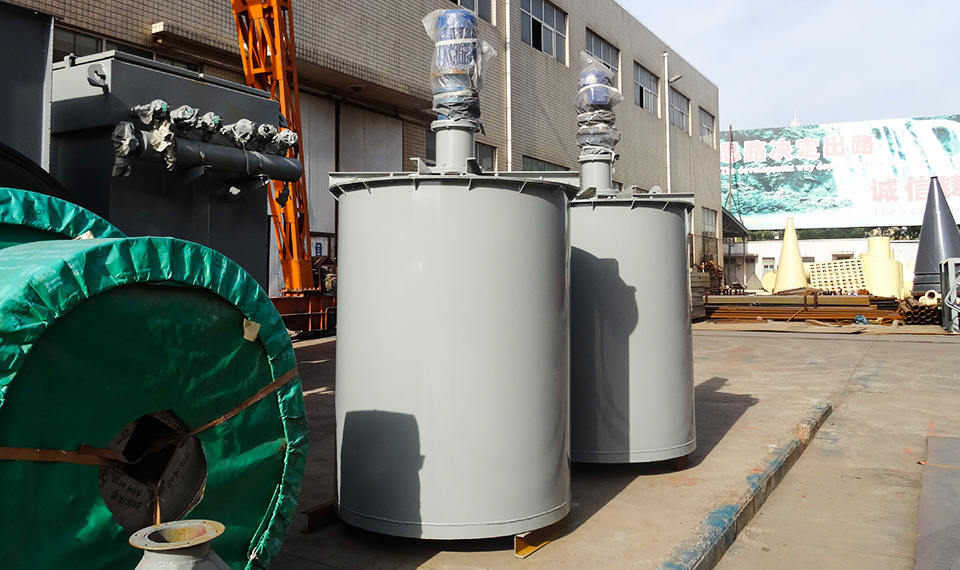 攪拌桶由電動(dòng)機(jī)、葉輪、定子、軸承等部件組成,采用平底桶形輻射循環(huán)螺旋葉輪機(jī)械攪拌式方法進(jìn)行攪拌作業(yè)。攪拌槽工作時(shí)電動(dòng)機(jī)牽引三角帶傳動(dòng)裝置帶動(dòng)葉輪旋轉(zhuǎn),礦漿和藥劑在葉輪的勻速攪拌作用下實(shí)現(xiàn)充分的相互混合,增加藥劑對(duì)礦漿的反應(yīng)時(shí)間,對(duì)藥物的反應(yīng)質(zhì)量進(jìn)行強(qiáng)化,從而使物料得到充分的攪拌和混合,為下一階段的浮選機(jī)生產(chǎn)做好必要的準(zhǔn)備條件。