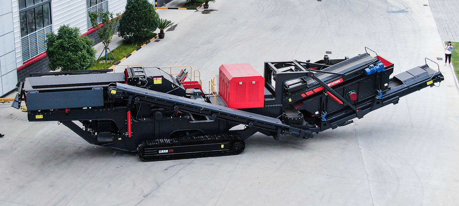該設(shè)備是我公司為滿足市場需求,自主研發(fā)的全液壓驅(qū)動履帶式車用底盤行走的移動破碎篩分設(shè)備,采用一體化成組作業(yè)方式,消除了組建的復(fù)雜安裝作業(yè),降低了物料工時(shí)消耗。